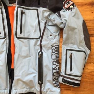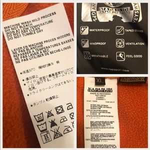 Excellent condition fleece lined hooded ski jacket. Features a removable hood, multiple pockets on the front, the arms, and interior. Fully lined, cuffed weather block wrists, and taped seams. This jacket is beautiful and rare! NAPAPIJRI logo on both sides of the coat and an embroidered Flag of Norway on the back. There is a tiny mark on the bottom back side of the coat. It looks to be a small pen marking, please reference photo.