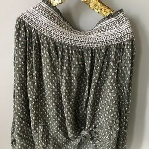 Off the shoulder olive green floral top