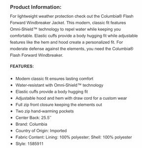 NEW Columbia WindBreaker Jacket