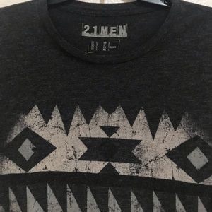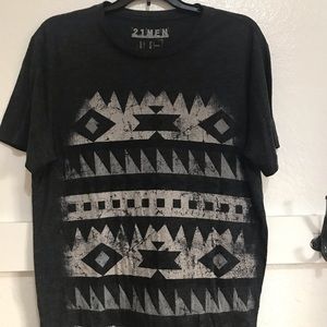 Forever 21 Men Tribal Charcoal Tee Shirt | Large