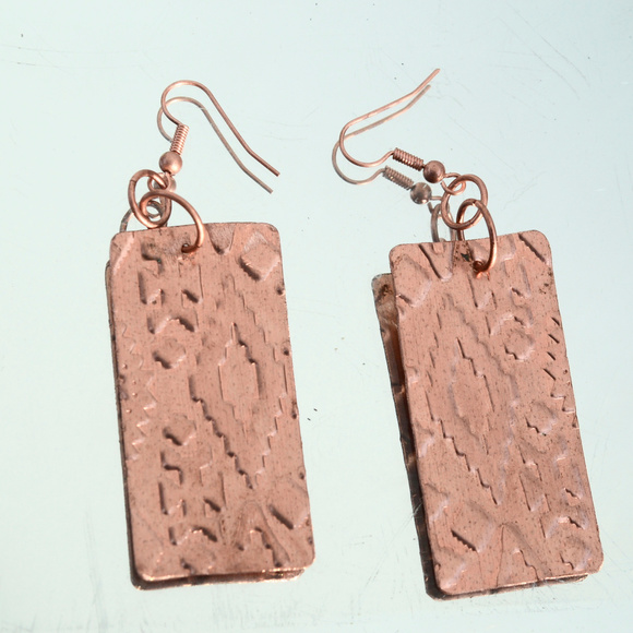 Solid Copper Earrings Boho Tribal Handmade Embossed Southwestern Western Aztec