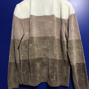 Half zip beautiful detail sweater very warm & cozy. No fading, stains or holes. Still in great condition from pet free and smoke free home.