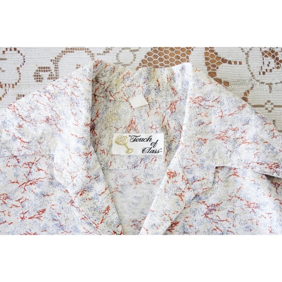 Vintage 70s White Blue Coral Speckled Disco Shirt