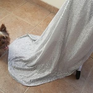 Gorgeous, backless Silver studded ball gown, Brand New - with train