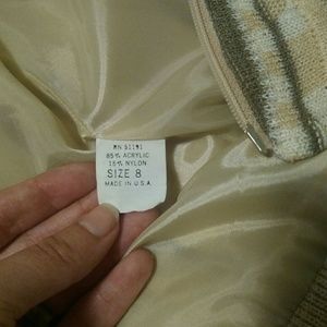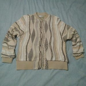 Great zip up bomber sweater jacket that could only have come out of the 1980s. Cream, taupe, and Dusty Rose knit pattern that will give you some flashbacks!