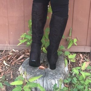 Great for the cool weather. Tall front lace up boots, chunky heel, zipper side. Faux Suede, all man made materials. Lined inside. These are so comfortable.