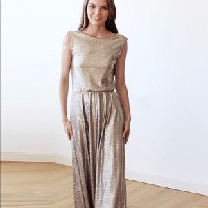 Long sparkly backless bridesmaids dress, ask me about sizing if interested because the fit can really work on anyone. I did not get it hemmed so it is long has a loose fit.
