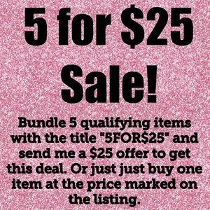 See my other listings with 5/$25 and save on a bundle! Lots of clothes, bags, jewelry and new boutique items. Great for gift giving. I love accepting offers.