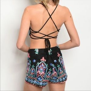 2-piece tie back set. Beautiful embroidery on both pieces. Top closes with straps in the back. Back zipper closure on shorts. Not sheer at all. Size Small measurements are pictured in the listing above. Size Medium and Large measurements are available upon request. Smoke free home. Reasonable offers always welcome! 🌸