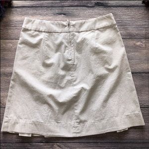 From J. Crew. Pleated Wendy Skirt in tan & cream stripe pattern. Pleated front, rear zip closure, pockets. Cotton. Easy to dress up or down, comfortable to wear. Offers warmly welcomed. (BCRC7O)