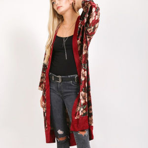 WINE VELVET FLORAL KIMONO