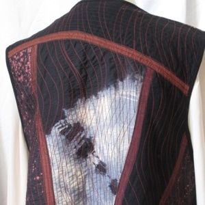 ARTISAN HAND MADE, HAND DYED VEST – Reversible. I purchased this vest at a crafts festival from the original maker. I have never worn it so it is new. The colors are as beautiful on both the inside and the outside and it can be worn either way. You will never see anything like this! You will stand out from the crowd. You can look up an artist named Mieko Mintz - maybe something she made. Not sure.