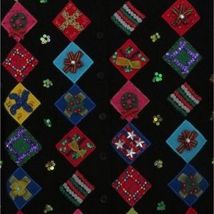 Appliqued, embroidered & beautifully embellished holiday cheer! New, without tag ~ it is in excellent condition. Features include 100% cotton knit ~ comfortable, embellished front & back, button front and a straight hem.