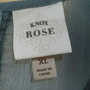 Only wore a couple of times. Pit to pit 24" top to bottom of shirt 35" love this top it is a very pretty cool color of blue with designs and I love the sides being longer this shirt is just too large for me. Bin B