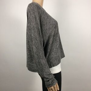 New women's oversized long sleeve knit top in heathered charcoal by Bear Dance. This loose fitting, ultra soft and stretchy top provides luxurious comfort.