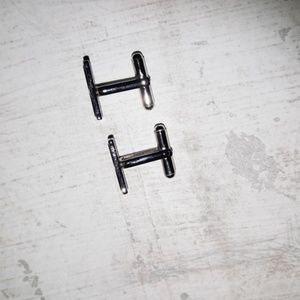 New. Pair of Stainless Steel Beveled Framed Black Onyx Rectangular Cuff Links. Approximately 3/8" face. Simple and elegant. Comes in a box and would make a great gift! Shown with and without flash.