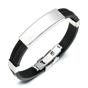 Men's Black Vegan Leather Stainless Steel Bracelet