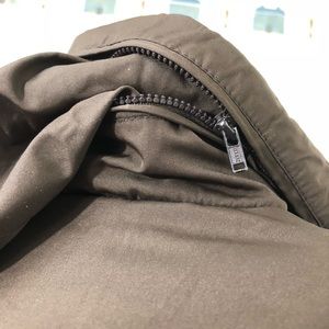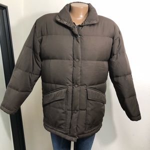 Pre-owned in no flaws condition, just normal wash wear. Features 2 front flap Velcro pocket closure, full zipper button closure, hidden hoodie; Filled 80% down 20% water fowl feathers. RN 38845