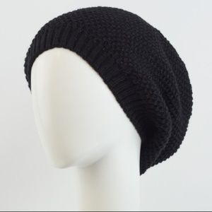 Black Waffle Knit Slouch Beanie