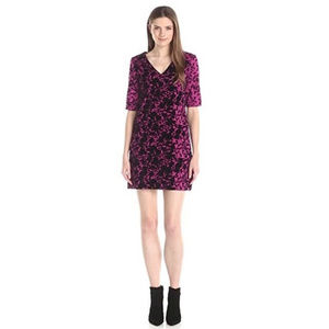 Plenty by Tracy Reese bright pink scuba shift dress with velvety Shadow Floral pattern. Stretchy figure flattering ponte that is fully lined. V neck, 3/4 sleeves. Unstretched measurements laying flat are: bust 16", waist 14", length 34"