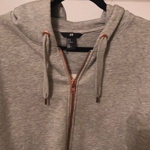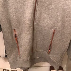 A cool gray hoodie jacket with rose gold zippers. Size Medium. Super cozy and perfect for fall and winter. Excellent condition. I don't think it has ever been worn.