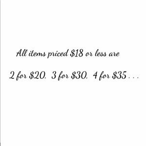 All items priced $18 or less are 2/$20, 3/$30, 4/$35 . . the more you buy the more you save 200+ sale items available