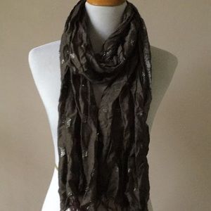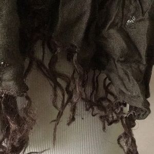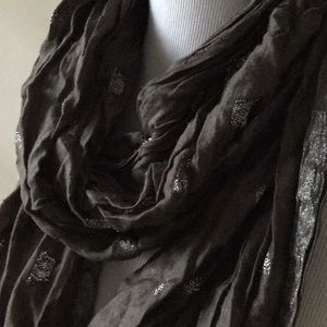 Add some boho flair to your fall wardrobe! Pretty deep brown color with silver embroidery and edging. Works as both a scarf or a wrap. Gauzy so it’s more for fashion than warmth. Thanks for looking!