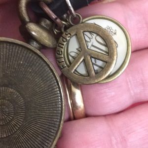 Leather necklace adjustable with charms including a locket charm. Handmade by Munandme