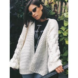 The Presley Sweater features an oversized + Slouchy silhouette, chunky knit, cardigan style, and puff sleeves.