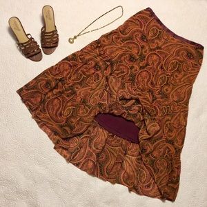 Liz Claiborne paisley tiered peasant dress with purple lining. Side zipper closure with hook and eye. In good used condition, size 10