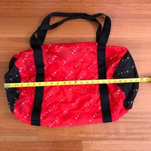 Red, black & white packable duffle bag. Never been used and easy to store. Measurements when bag is laying flat are pictured.