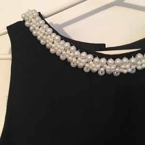 Little black dress with pearl collar