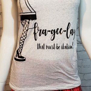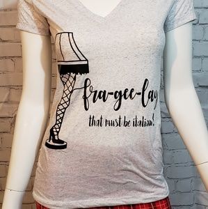 Super soft gray and black A Christmas Story fra-gee-lay that must be Italian! shirt. Great conversation piece to give as a gift or keep for yourself this holiday season. **DISCLAIMER **These do run on the small side.