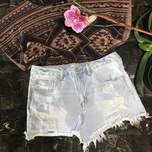[Forever 21] High-Waisted Ripped Shorts Light Wash