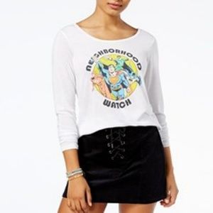 SUPER HEROES Long Sleeve Graphic Tee NEW Womens Size Small White