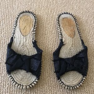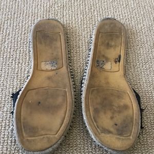 The item for sale is a pair of Women's black slide sandals. They are size 8-9 and are gently used.