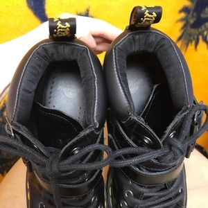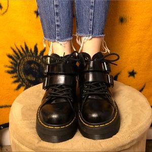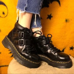 Dr Martens RARE discontinued Bryony Boots! Double buckle with lace up. These have a 1.5” platform and a 2” heel. Have some weight to them. In good condition! Some scuffs and marks but nothing too major, just slightly broken in. These are a US women’s 7, however these run big!!! They fit like an 8!! I wear a 7.5 and there is extra room in these. Padded ankle and heel loops. These babies are so badass to stomp around in and they deserve a good home!!
