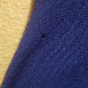 Dark blue polartec pull over. I believe it is a mens medium but could be worn by a women. Has one front zip pocket. Also has one small burn hole in the shoulder. Other than that great condition. About 26 inches from shoulder to bottom and 22 inch arm pit to arm pit.