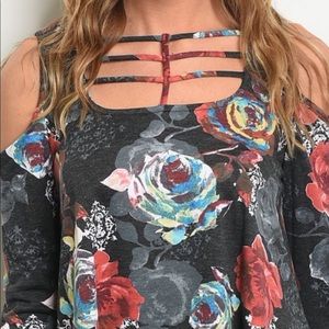 Charcoal Gray Cold Shoulder Floral Top