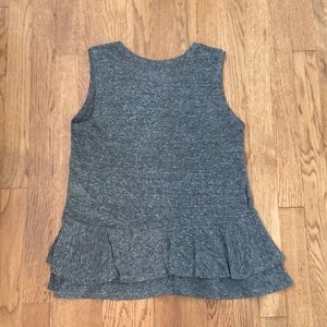 Gap linen blend gray tank top, Size XS. Double ruffle bottom adds fun to this tank. Scoop neck, linen blend makes it nice and airy.