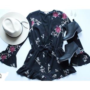 NWT Cotton Candy LA Black Floral Front tie Romper