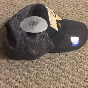 Never been worn! Has tag, sticker, and cardboard to keep shape all still in place. This is a unisex item.