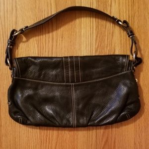 Hayden Harnett Lorca in supple Black pebbled leather, in good used condition. This bag has signs of wear normal for one of its age (scratches on hardware, wear at corners, missing latch on front flap) but has lots of life left to give and is free of tears, stains, or odors! Comes from a smoke-free home without dustbag.