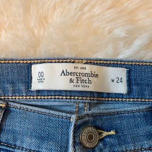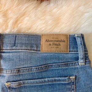 Mid-rise medium wash Abercrombie and Fitch denim shorts. Excellent condition! Cuffed bottoms and fully functioning pockets! Super nice patch in the back!