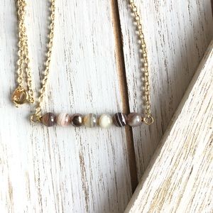 I designed this natural Botswana Agate gemstone necklace with the intention of bringing LOVE and COMPASSION to the wearer. This natural gemstone necklace features a 20” 12k gold chain and 2” bar style pendant.