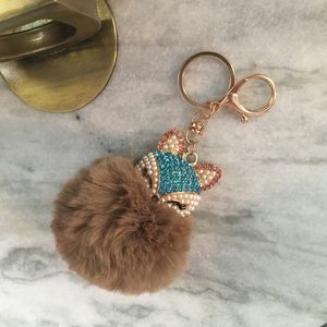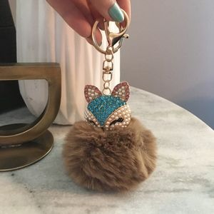 Rhinestone Fox Furry Pom Pom Pearl Keychain Purse