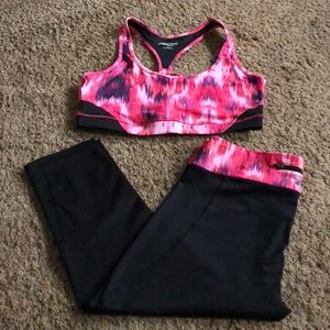 ExpCore (Express) performance set. I’m open to selling separately but posting as a set. The top and bottom are both large. The bottoms have a zip pocket at the top.