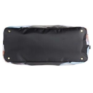 Coated canvas, large prints against a dark background make for a beautiful bag. Gently used but still in excellent condition. Light scuff marks on black upper part of bag as pictured which you can’t notice in real life unless you inspect it. GORGEOUS! Grab it before it’s gone!