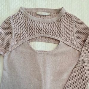 Ballerina inspired rose pink cashmere sweater with subtle tulip hem and crochet sleeves. Unique piece! Worn once. Excellent condition