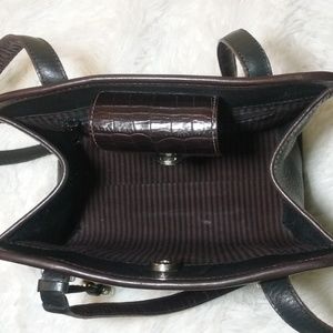 Cute and lovely preowned small Brighton moc croc leather purse in good condition. Features one zip compartment. The back has an open pocket.